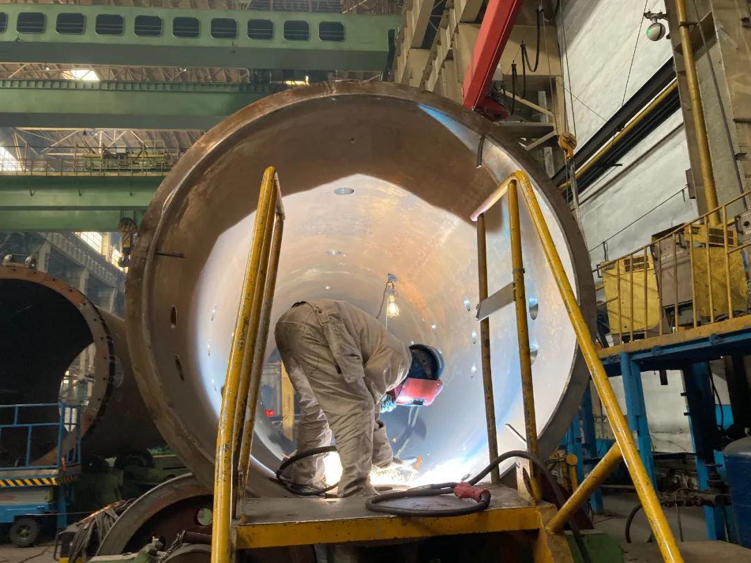 重裝公司青年職工焊接寧德項(xiàng)目蒸汽發(fā)生器水壓封頭組件