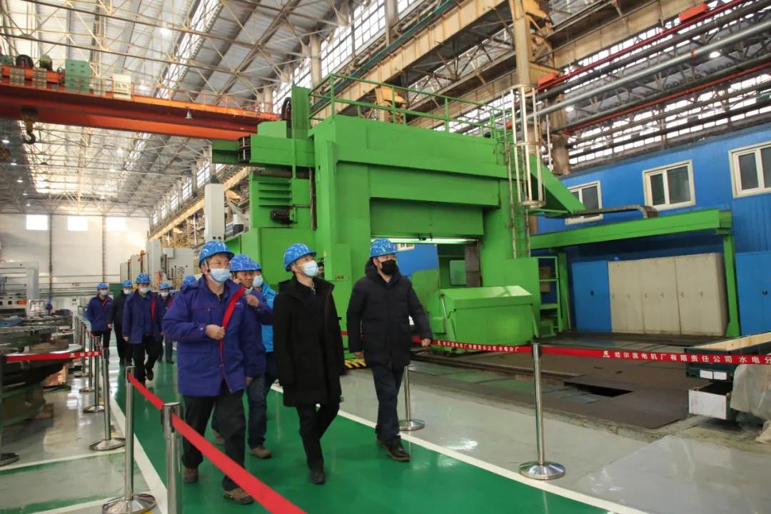 1月9日上午,哈電集團黨委書記、董事長斯?jié)煞驇ш牭诫姍C公司檢查疫情防控工作。哈電集團總經(jīng)理助理張海權(quán)陪同檢查。