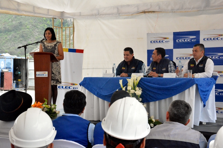 厄瓜多爾政府官員、公企協(xié)調(diào)公司主席 Edisson Garzón先生于2018年1月12日13時在CELEC公司總經(jīng)理Francisco Vergara先生、CELEC胡邦公司經(jīng)理 Fabricio Zambrano先生陪同下,出席了業(yè)主方舉辦的美納斯水電項目大壩蓄水儀式并發(fā)表講話,還到美納斯水電項目現(xiàn)場參觀考察。