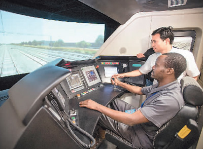 日前,來自泰國(guó)、斯里蘭卡、老撾等13個(gè)國(guó)家的63名鐵路管理人員來到武漢高鐵訓(xùn)練段進(jìn)行參訪交流活動(dòng)。在“一帶一路”背景下,2015年開始武漢高鐵訓(xùn)練段已舉辦了泰國(guó)、老撾等14批涉外鐵路技能培訓(xùn)班,培訓(xùn)涉外學(xué)員400余人次。圖為來自肯尼亞的賈斯特斯·卡洛·姆文加在高鐵模擬駕駛倉(cāng)內(nèi)體驗(yàn)實(shí)際操作。 |