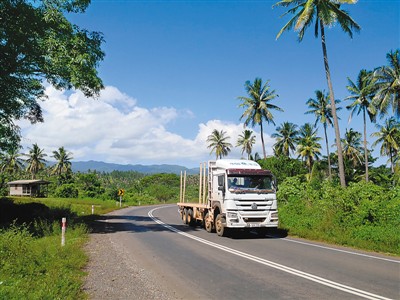 瓦努阿島是南太平洋島國(guó)斐濟(jì)第二大島。中鐵一局斐濟(jì)公司在島上修建的納布瓦魯高速公路和布扎貝高速公路解決了人們出行的“老大難”問題,有力拉動(dòng)了經(jīng)濟(jì)發(fā)展,被斐濟(jì)民眾譽(yù)為“斐中兩國(guó)友好的紐帶”“共同發(fā)展致富的高速路”。圖為一輛卡車行駛在布扎貝高速公路上。 |