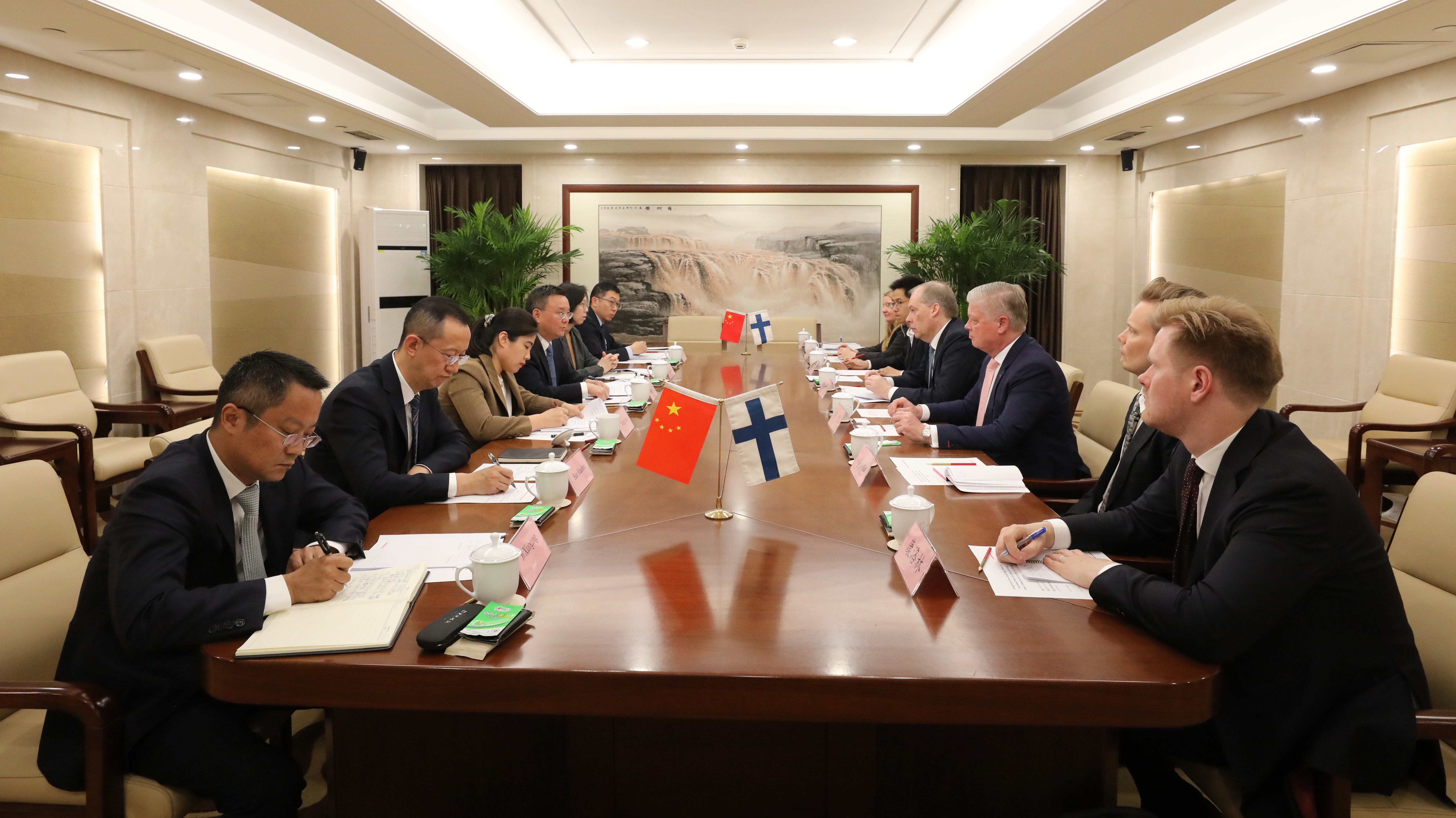雙方一致表示,去年習(xí)近平主席同來(lái)華進(jìn)行國(guó)事訪問(wèn)的斯圖布總統(tǒng)舉行會(huì)談,達(dá)成重要共識(shí),共同開(kāi)辟中芬關(guān)系更加美好廣闊的前景。茍坪表示,今年是中芬建交75周年,愿同芬方一道,落實(shí)好兩國(guó)領(lǐng)導(dǎo)人重要共識(shí),加強(qiáng)交流互鑒,拓展合作空間,共享發(fā)展成果,推動(dòng)中芬面向未來(lái)的新型合作伙伴關(guān)系不斷發(fā)展;將繼續(xù)支持中央企業(yè)與芬蘭企業(yè)深化經(jīng)貿(mào)往來(lái),在鞏固傳統(tǒng)產(chǎn)業(yè)合作的同時(shí),拓展信息技術(shù)、數(shù)字經(jīng)濟(jì)、生物技術(shù)等新興產(chǎn)業(yè)合作。