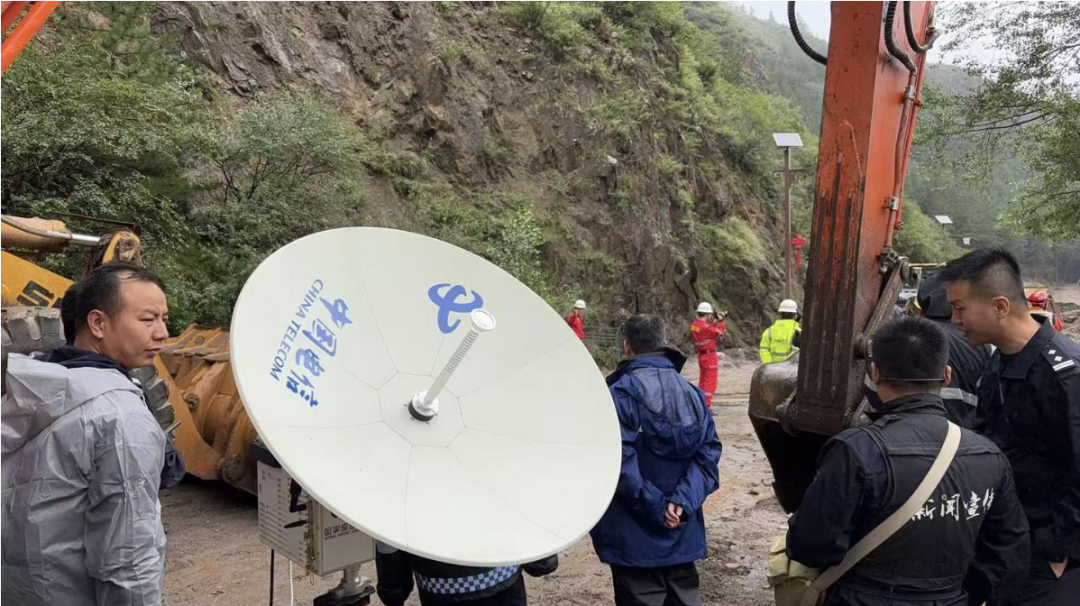 中國電信工作人員開展應(yīng)急通信