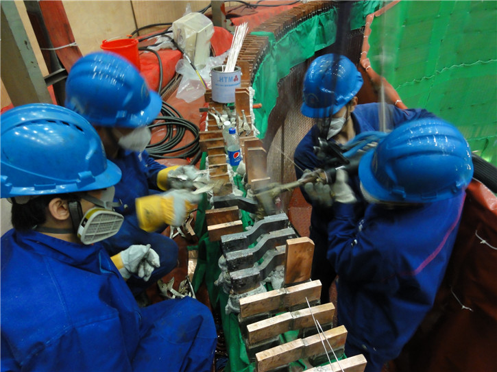小灣水電站位于云南省大理州南澗縣與臨滄市鳳慶縣交界的瀾滄江中游河段,電站裝機(jī)6臺(tái)單機(jī)容量700兆瓦的混流式機(jī)組,其中4臺(tái)機(jī)組(分別是1號(hào)機(jī)、3號(hào)機(jī)、5號(hào)機(jī)和6號(hào)機(jī))由電機(jī)公司改造,為電機(jī)公司首次獨(dú)立完成70萬機(jī)組定子裝配。小灣改造項(xiàng)目歷時(shí)4年,自2014年10月改造開工起,電機(jī)公司先后派遣200余人次趕赴電站執(zhí)行任務(wù)。為滿足電站的發(fā)電需求,改造周期一再壓縮,從3號(hào)機(jī)120天縮短至6號(hào)機(jī)100天,改造團(tuán)隊(duì)高標(biāo)準(zhǔn)嚴(yán)要求地完成了4臺(tái)70萬千瓦級(jí)發(fā)電機(jī)定子的拆裝,得到了業(yè)主的高度贊揚(yáng)。