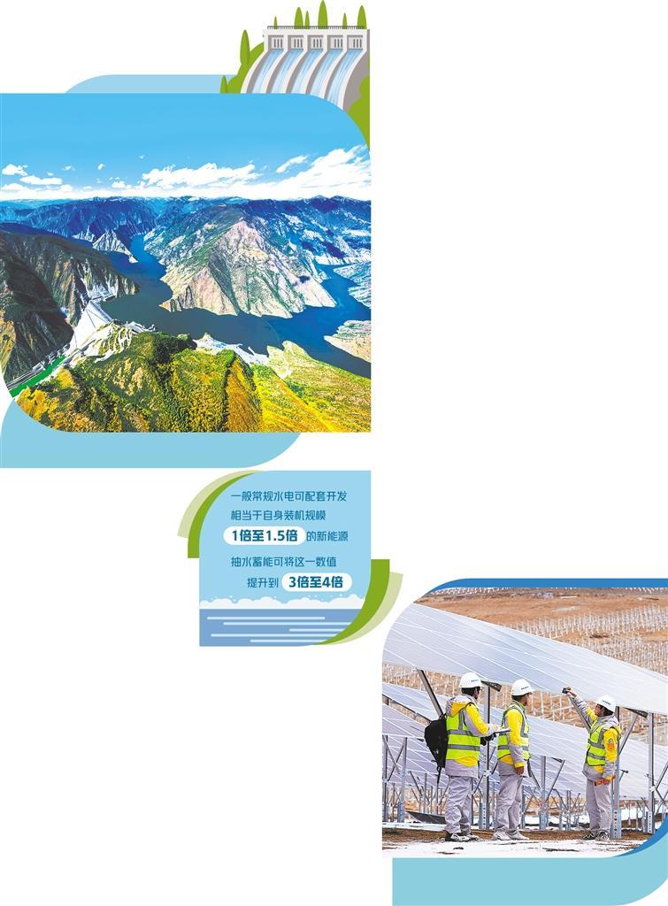 水電像一根強(qiáng)有力的杠桿,撬動(dòng)更多的新能源開發(fā)?!耙话愠R?guī)水電可配套開發(fā)相當(dāng)于自身裝機(jī)規(guī)模1倍至1.5倍的新能源,抽水蓄能可將這一數(shù)值提升到3倍至4倍?!眹都瘓F(tuán)雅礱江公司總經(jīng)理郭緒元說,雅礱江干流常規(guī)水電技術(shù)可開發(fā)容量約3000萬千瓦,水庫總庫容大,抽水蓄能站點(diǎn)眾多,調(diào)節(jié)性能優(yōu)異,流域光伏風(fēng)電資源豐富,可形成總規(guī)模超1億千瓦的水風(fēng)光互補(bǔ)綠色清潔可再生能源示范基地。