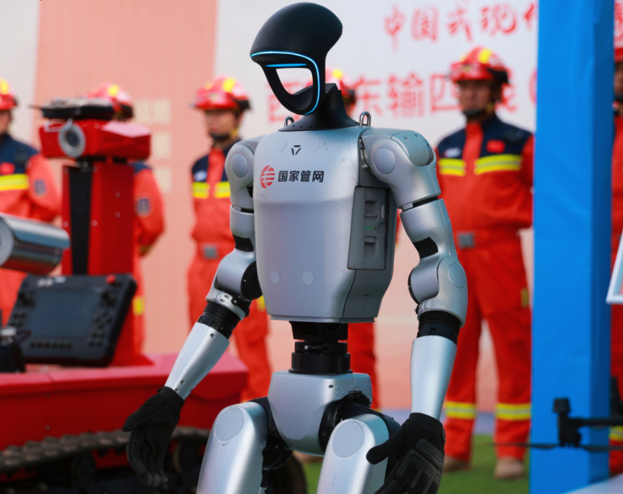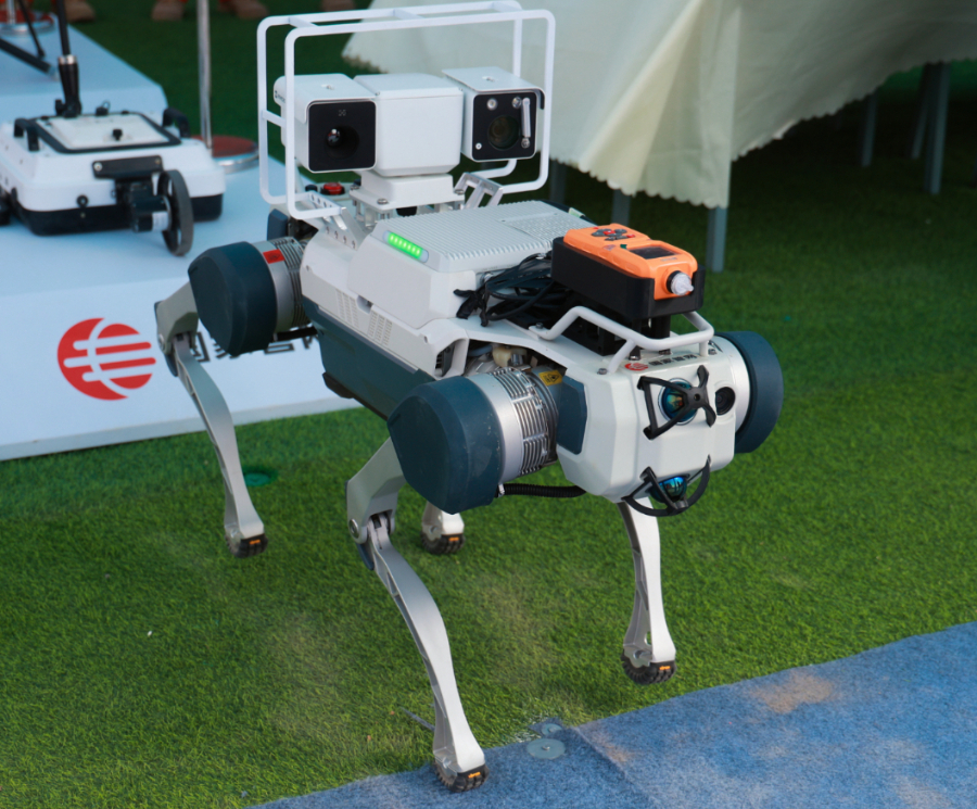 四足機(jī)器人與人形機(jī)器人則組成了“第一現(xiàn)場”的“先遣隊(duì)”?!八淖銠C(jī)器人可以將40公斤物資馱在背上,仍能以20公里/小時(shí)的速度在各種地形間穿梭,實(shí)現(xiàn)設(shè)備物資短距離迅速搬運(yùn)?!惫ぷ魅藛T表示,在搶險(xiǎn)現(xiàn)場如果存在可燃?xì)怏w或有毒有害氣體泄漏,還能通過多通道接口搭載氣體檢測、操作臂等輔助模塊,用四條仿生腿跨過各類障礙抵達(dá)“第一現(xiàn)場”進(jìn)行簡單處置操作和數(shù)據(jù)回傳。