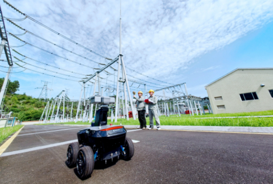國網湖北電力員工運用智能巡檢機器人在十堰市茅箭區(qū)220千伏龍虎溝變電站進行設備巡視。