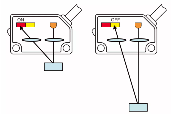 背景抑制光電開(kāi)關(guān)采用的是兩段二極管受光元件,根據(jù)物體的反射光照射在受光元件的不同位置進(jìn)行檢測(cè)。